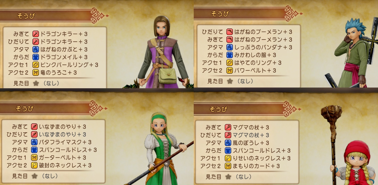 この段階で装備は以下のようになっているはずですが、超最新情報のほうでグロッタのカジノでアイテムをゲットすればさらにいい装備が手に入る